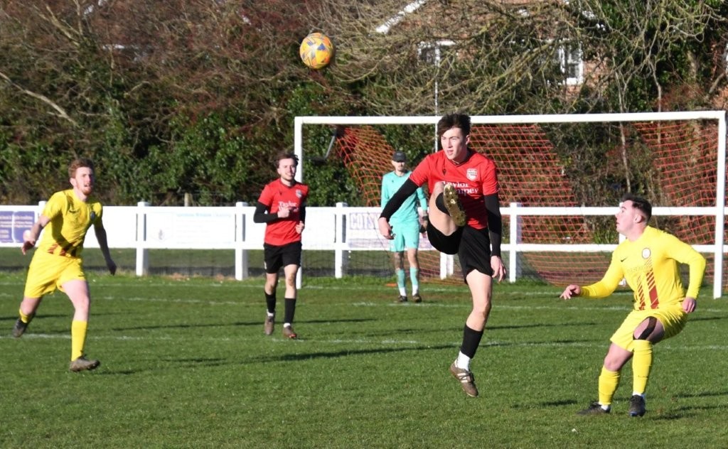 At Waterwells, Quedgeley Wanderers produced a strong all-round performance to secure a convincing 4-1 victory over Broadwell Amateurs. The hosts started the match brightly and almost took a ninth minute lead when Fin Jenner latched onto a Dylan Venn clearance, rounded Jack Watkins but dragged his effort wide. Broadwell responded with physical intensity but it was Quedgeley who continued to press, with Stokes and Jenner both forcing corners. The breakthrough for QW arrived on the half-hour mark from a corner superbly delivered by Riley Stokes with Henry Miles rising highest at the back post to head Quedgeley into a deserved lead. However, the advantage was short-lived as a sloppy touch at the back left Broadwell’s Jamie Belfitt through on goal and he calmly lifted the ball over Kieran Derbyshire for 1-1. Quedgeley responded well and after Fin Jenner had pulled a good chance wide of the goal he made amends, when picked out by Alfie Pledgers excellent 40-yard pass, rounding Watkins to confidently finish and restore the lead. And, it was only moments later when Henry Miles was fouled inside the box allowing Venn to cooly convert the resultant spot-kick. After half time Broadwell looked to get back into the game and had a free kick narrowly wide and forced a good save by Derbyshire from a goalmouth scramble. But as the game wore on Quedgeley generally remained in control and despite ten minutes in the sin-bin for Venn and Broadwell picking up a couple of yellows in frustration they were able to see the game out. The result was sealed in the 86th minute when Oli Barnett’s cross was headed back into the danger area and Miles showed great footwork to twist and fire the ball into the top-corner for 4-1, giving Quedgeley a comfortable and deserved victory.