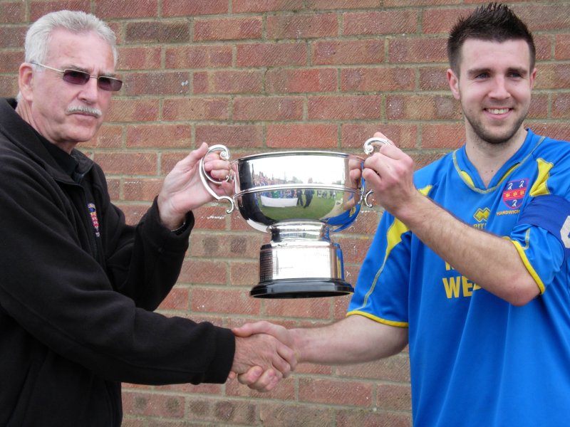 Hardwicke secretary Stan Hine receiving the League Championship Trophy from Chairman