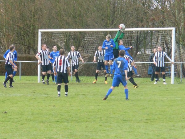 Thornbury Town came up against a very determined D.R.G. Stapleton who bounced back from their heavy defeat last Saturday to win 2-1. It was a frantic game with the visitors playing very direct football and not allowing Thornbury to settle into their passing game that they like to play. The visitor’s striker Ben Burrell was a threat all afternoon and he almost scored after 8 minutes but stabbed the ball just wide of the upright. Five minutes later he made up for that miss when he was put clear on goal to put the visitors one up. Steve Thompson who was called upon to play in goal for Town brought off a brilliant save from his own player Scott Reeves that would have given the visitors a 2-0 lead. Thornbury did pull the score level after 50 minutes when the D.R.G. defence got into an awful mess and Danny Thompson picked up the loose ball to drive the ball past the keeper. D.R.G. found themselves back in front on the 55th minute as a long cross into the box was volleyed home by Fabian McCarthy at the far post. In the 75th minute Dean Morgan saw his effort on goal cleared of the line but the home side could not find their usual rhythm at all today. Continued