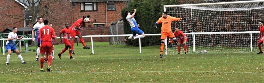 The second half was a little more balanced but still the home side had chances to increase their tally but Kingswood’s effort in the second half was vastly improved and they defended well. The home side could well have made it six on 50 minutes as Nathan Croot was dispossessed by Allen Williams on the edge of the Kingswood box but the striker’s finish with a one on one with Fox was poor the ball going well wide of the goal. Adam Eldridge pulled off a great tackle to deny Jake Robertson a clear run on goal on 61 minutes. Then on 68 minutes Allen Williams had another good chance but somehow the Kingswood defence got the ball clear. A cross from Mike Hardiman found Joe Thomas on the far post and his header was heading into the goal until Lewis Toop intervened and headed off the line. Kingswood’s only effort on goal in the second half fell to Lewis Toop but his shot did not trouble Tyler Edmunds.