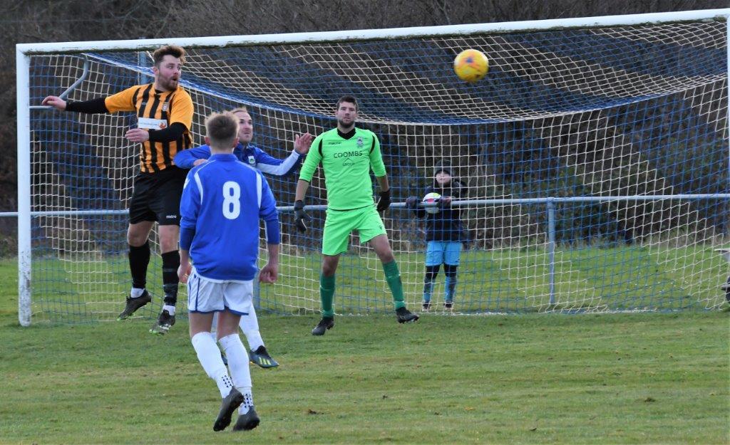 In the only fixture played over the Christmas period it drew 299 spectators to this local derby between Ruardean Hill Rangers and Broadwell Amateurs who travelled the short distance for this Forest of Dean clash. Rangers Luke Brown had the first chance of the game after 5 minutes making himself some room on the edge of the box but then shot wide of the Broadwell goal. The first attempt from Broadwell came after 9 minutes Keiron James was played through to a one-on-one situation with Underwood in the home goal making a great save. Just 2 minutes later James gave Broadwell the lead with a great volley after picking up a knock down from a free kick. Broadwell had a great chance to make it 2-0 on 30 minutes when Liam Thomas hit the ball wide when free on the back post. Luke Brown’s tried his luck from outside the box on 43 minutes but his effort hits a defender before going out for a corner.