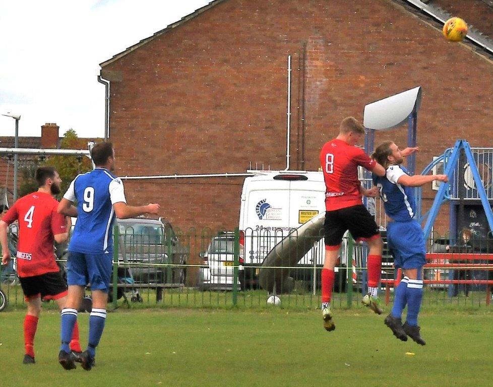 Another local derby between Hardwicke and Quedgeley Wanderers drew a bumper and top crowd of the day with 111 spectators. Hardwicke started brightly and could have taken the lead on two minutes when a powerful free kick was parried away by Evan Coombes. Shortly after Harry Furniss raced down the wing past two defenders and unleashed a 20 yarder well saved by Coombes. Ten minutes another chance when Hardwicke’s Pat Vernall lofted the ball over the defence for Will Mathews to head over. With the home side dominating, a Furniss cross was met by Mathews whose header came off the post. However despite all that pressure it was Wanderers who surprisingly took the lead with their first foray in the Hardwicke half when a back pass to Nathan Barrett was intercepted by the lively Sean Lawson who strode into the area and placed the ball into the back of the net. Hardwicke again took the mettle and Mathews received from Fred Humphries only to shoot wide. But it was Quedgeley who increased their lead right on half time when Ollie Curtis headed home. Further pressing in the second half saw Hardwicke have a goal wiped out as Higgins was deemed to have tackled unfairly. Hardwicke’s woes continued on 55 when Jordan Dowdeswell was dismissed for a second yellow. The game became more even for a while with few opportunities until Hardwicke lifted their game for the final ten. With five left Jack Twyman’s free kick was fumbled by Coombes leaving James Ractliffe to stab home. Three minutes later Ractliffe became provider when his cross was struck home by Furniss to square thing up. The home side almost snatched it at the death but Furniss fired over and Mathews header was cleared off the line. Breath taking stuff and an entertaining derby finished all square 2-2.
