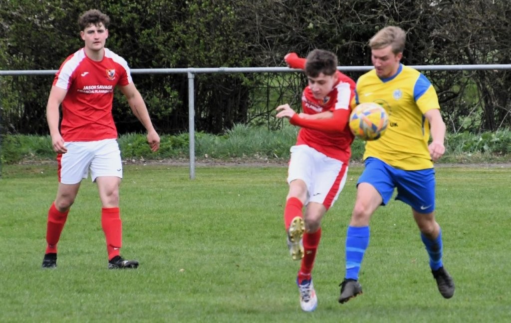 Knapman, a Fin Jenner ball just eluding Harry Reynold and a Jenner shot blocked by Liam Planter. Hanham’s only clear